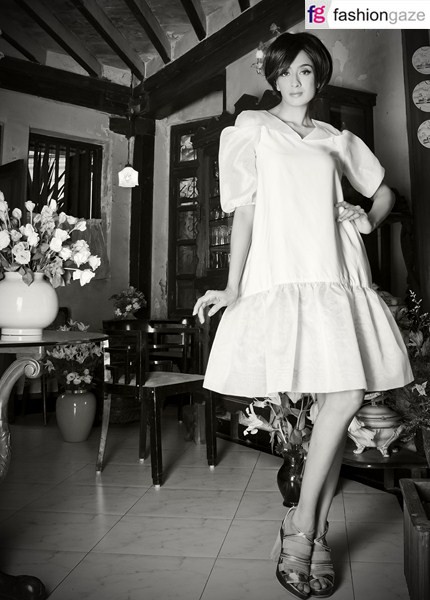 Beautiful Textures- Soft cotton voile, cotton satin, crepe de chine and silk jersey molded into modern silhouettes, this collection is a stunning take on elegance and sophistication.Black and White stripe break the white and floral collection of separate’s, dresses and jumpsuits. Surface embellishment adorns the evening collection in Gold.