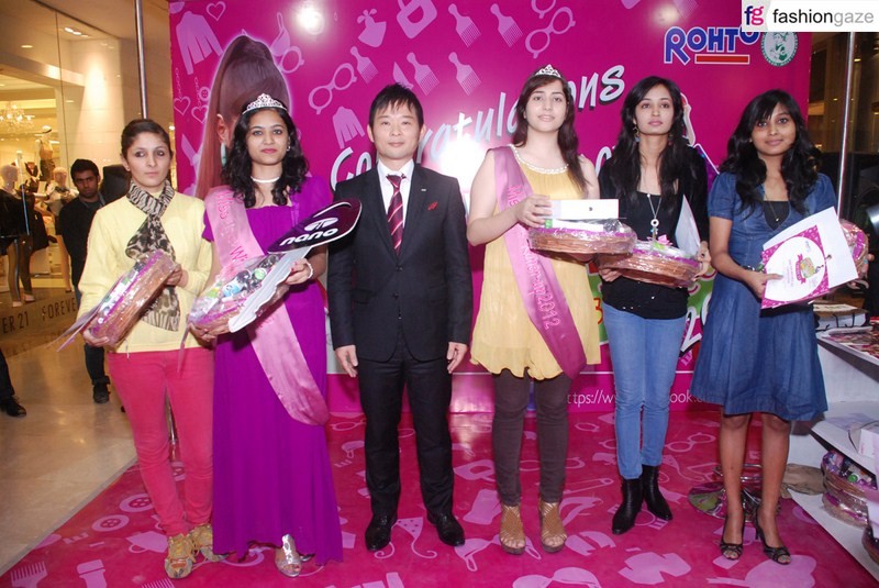 Winners of the Miss Lipice contest with Shingo kuriyama MD Rohto Pharma (India )Pvt Ltd