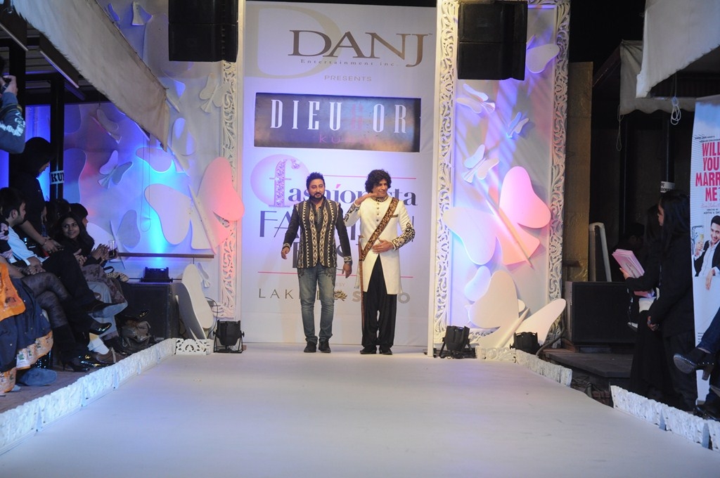 Fashionista in association with DANJ presented a royal extravaganza of fashion ‘Fashionista Fashion Fest 2012’ that gleamed in the open night sky at Lure, Tavern on the Green.The evening took a roll with the first show in sequence by Designer Kunal.S unveiling his latest collection titled ‘Nawab Reincarnation’. Actor Nasser Abdullah walked as a show stopper who stunned everybody in the nawabi andaaz.