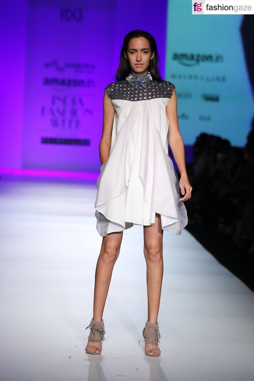 Ace designer Pallavi Mohan has showcased her latest Spring Summer 16 collection on day 2 of Amazon India Fashion Week at NSIC ground ,New Delhi.Designer Pallavi Mohan’s collection is an amalgamation of laser cut 3D metallic star contour on washed denim with sensuous sheer and organza giving it a feminine twist .