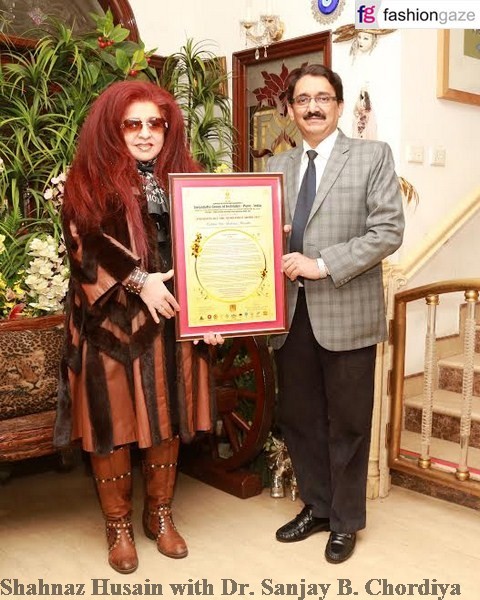Shahnaz, the “Pioneer of Ayurveda” was presented the award at her residence in the capital city. To do the honours, Prof Dr. Sanjay B. Chordiya, Founder President and Chairman Suryadatta Group of Institutes flew all the way from Pune to personally honour the ‘Pioneer of organic Beauty care’ for single handedly revolutionizing and transforming the Beauty Business with her sheer passion, grit and vision.