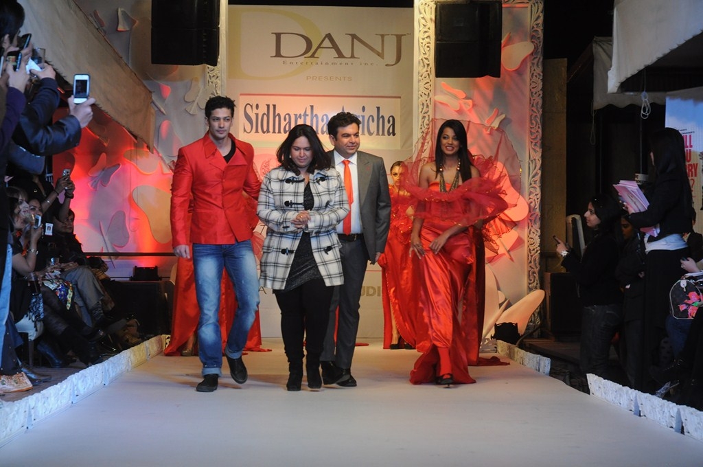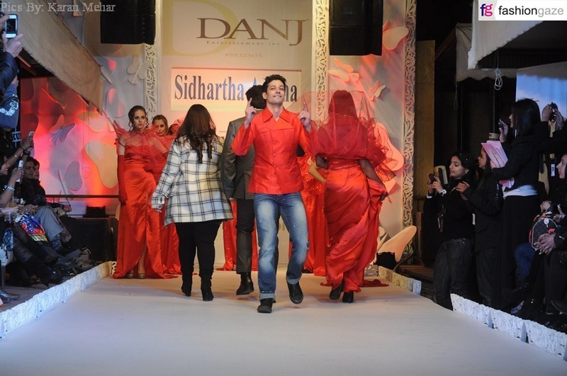 [tab:Feed]Sidhartha with Mugdha Godse and Muzambil IbrahimFashionista in association with DANJ presented a royal extravaganza of fashion ‘Fashionista Fashion Fest 2012’ that gleamed in the open night sky at Lure, Tavern on the Green.Adding a twist to the mood of the show, Designer Sidhartha Agicha brought the Victorian era alive on the ramp. With the renowned models like Carol Gracias, Laxmi Rana, Sonalika Sahai, and more flaunting his exuberant designs of vintage gowns. “My collection is a scintillating mix of flowy gowns and short dresses embellished with swarovski in luring colours and bold cuts”; said Designer Sidhartha Agicha.